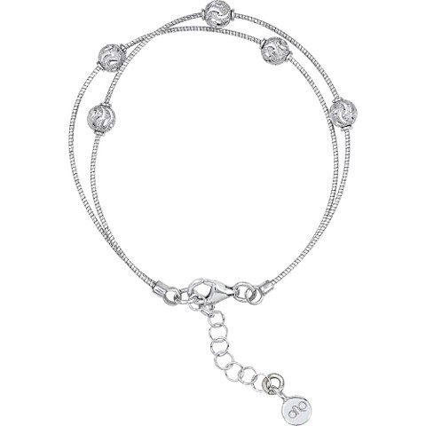 sterling silver 2-Strand diamond cut wire w/5 diamond cut beads