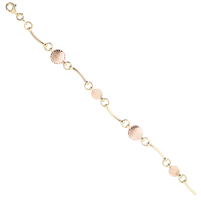 14k yellow gold high polished bars with rose gold satin & high polished disks