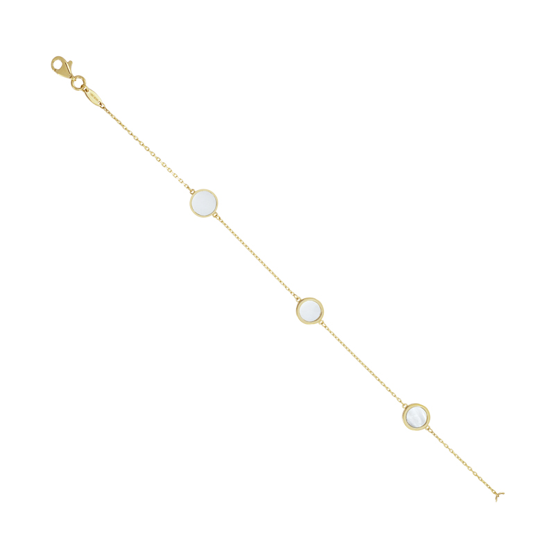 14k yellow gold cable chain with round mother of pearl stations