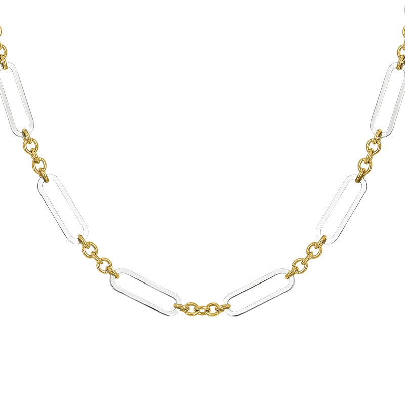 14k 4.5mm yellow gold paperclip links with yellow cable chain connection