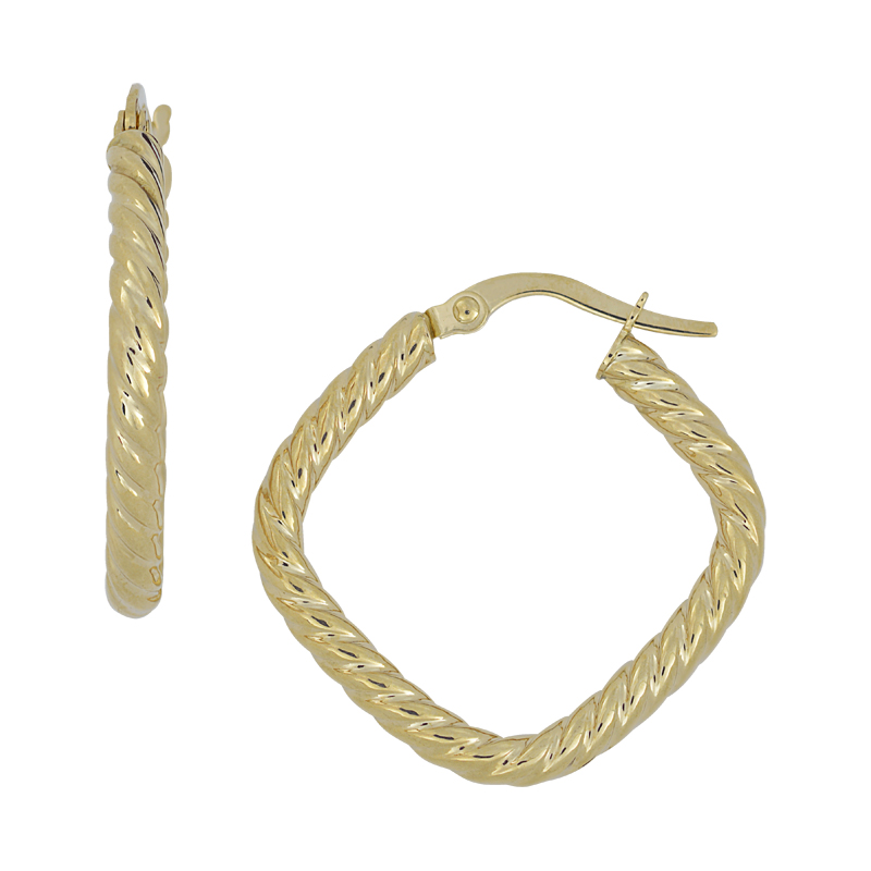 14k yellow gold 2.5mm Ribbed Square Hoops