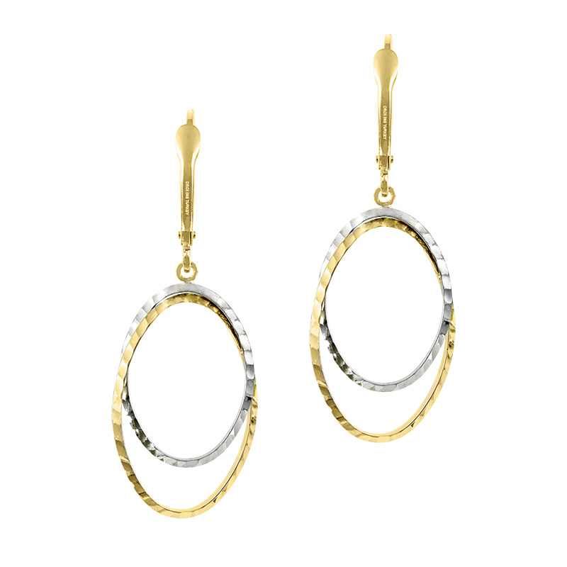 14k two tone yellow and white gold diamond cut oval earring