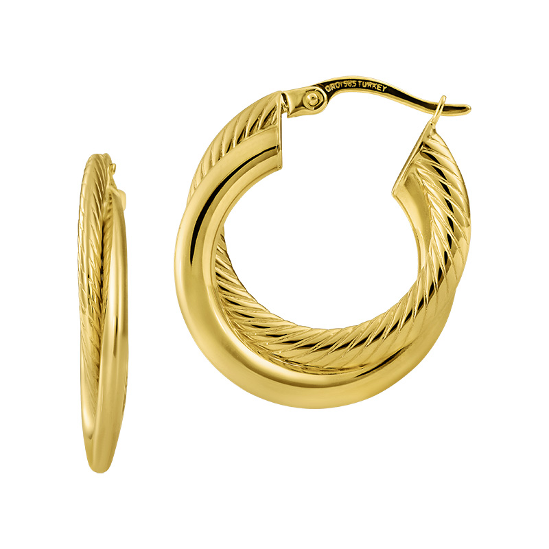 14l yellow gold double high polished and twisted hoop