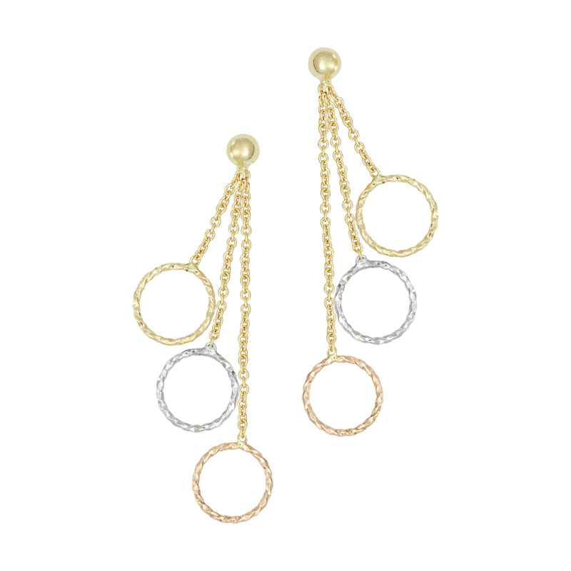 3 14k yellow cable chains with yellow, white and rose diamond circles on each